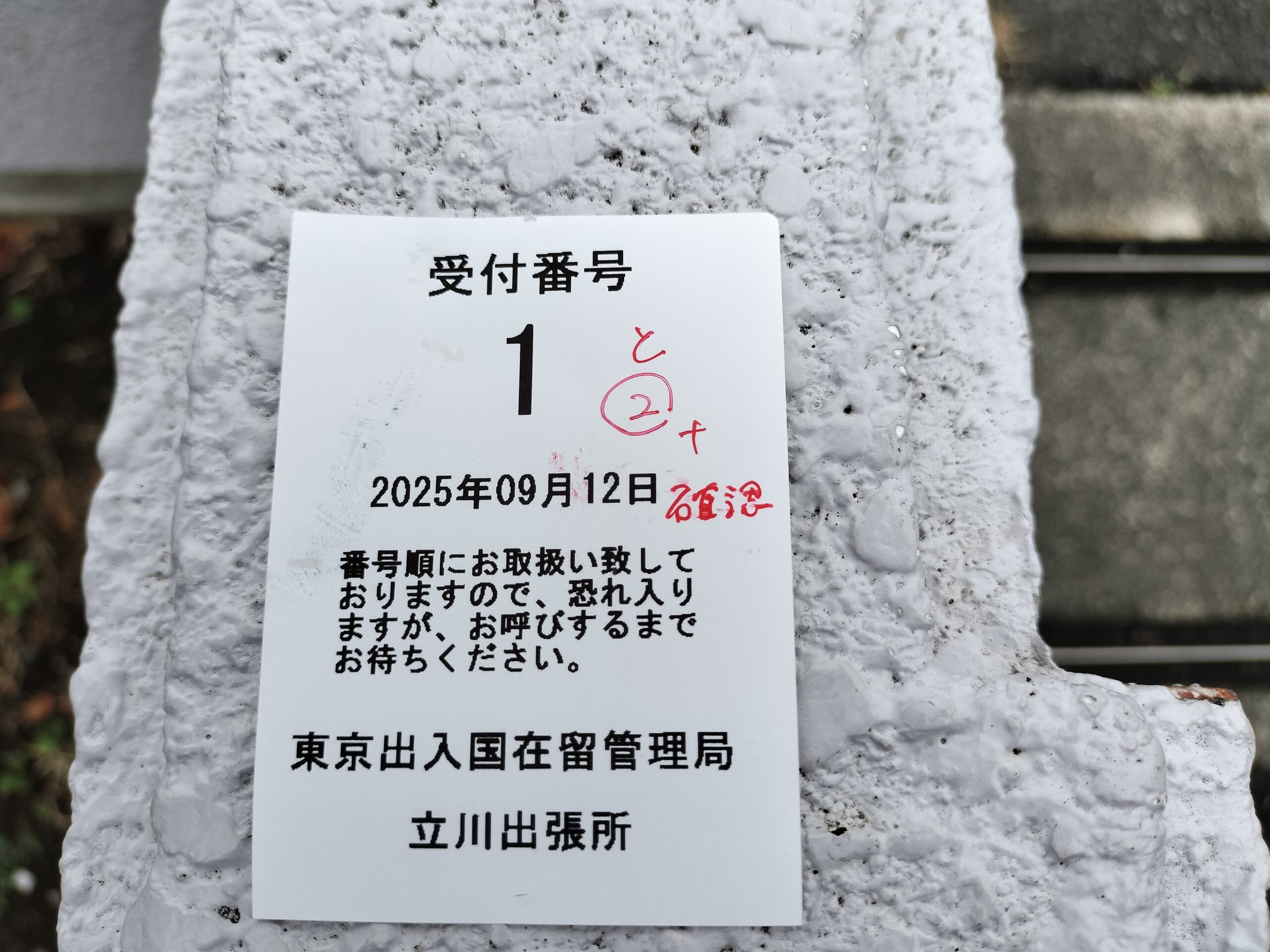 この日は、絶対に遅刻することができない業務が午後にあるため、立川入管に久しぶりに朝から並びました。